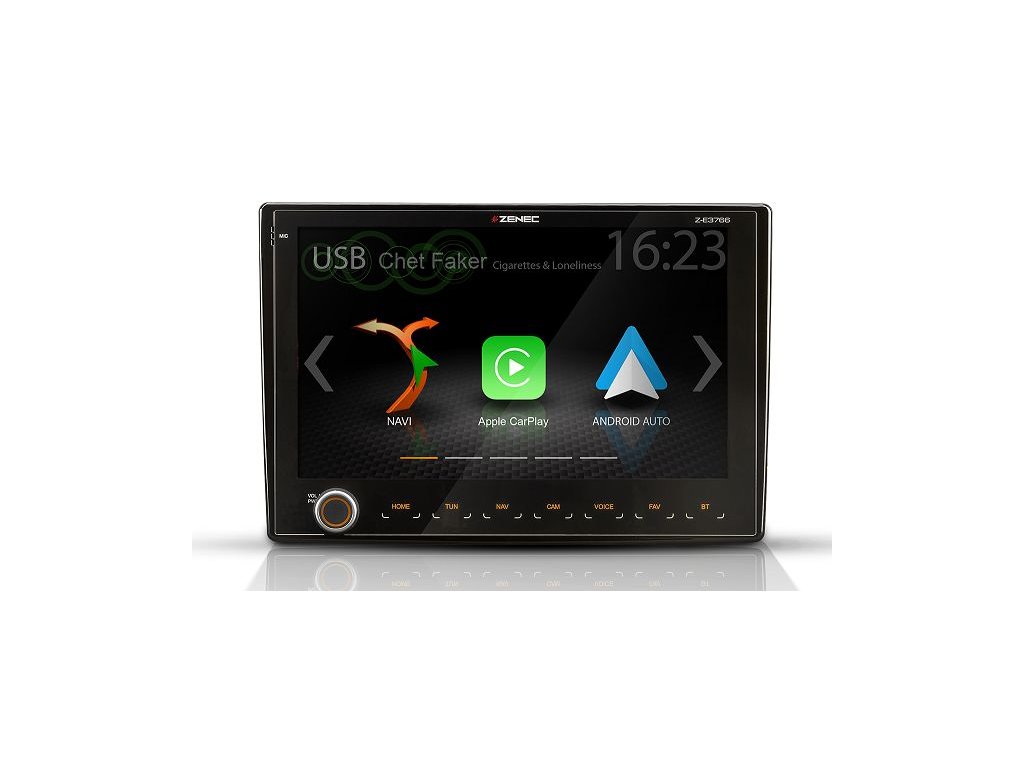 Z-E3766 umožňuje snadné a zvláště bezpečné použití smartphonu ve vozidle. Mobilní telefon můžete dokovat přímo do infotaineru přes USB port – zařízení má certifikaci Apple CarPlay a Google Android Auto. Telefonování, navigace, příjem/odesílání zpráv nebo poslech hudby – všechny podporované funkce můžete ovládat pohodlně přes Apple Siri, hlasového asistenta Google nebo přes dotykovou obrazovku infotaineru ZENEC.